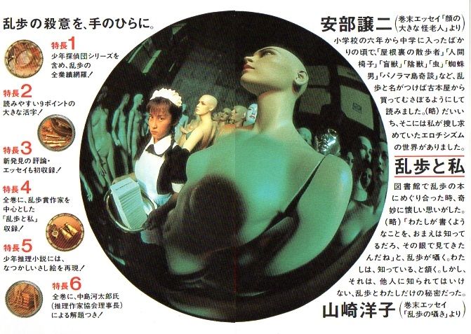 実際のところ、本書に収録された作品のうち一部は、乱歩全集としては最初に刊行された平凡社版(昭和6年)に収録されているのです。しかし、以後の全集では収録されることはなかったことから、「削除された」という言い方もできなくはありません。